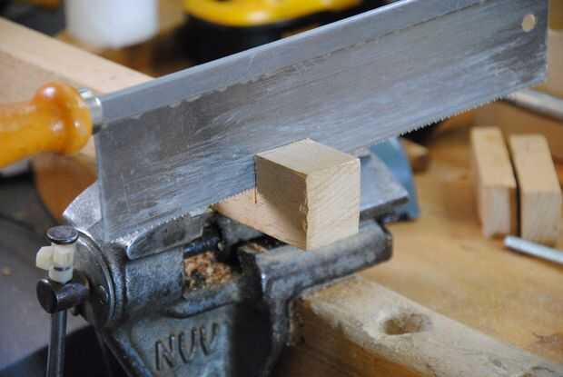 Sujeta la madera en mi mordaza y había cortado a la medida con un backsaw, como se muestra en la imagen. Las dimensiones son: