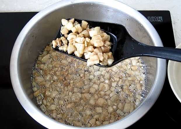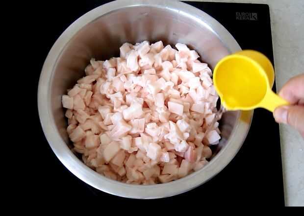 Use temperatura baja para evitar la grasa de la quema para alcanzar pura manteca de cerdo blanco, casi inodoro e insípido.