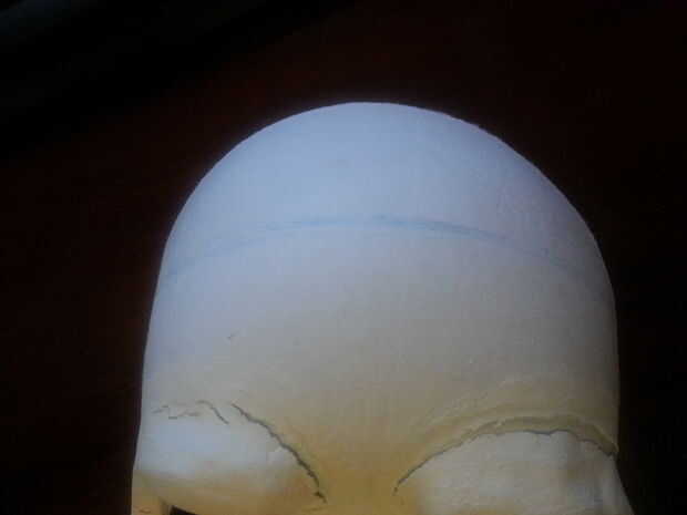 La frente es relativamente sencilla, solo hay el área por encima de las cejas lisas fuera casi al ras con la parte superior de la máscara, o no tenerlo como yo lo hice! Aún más fácil!