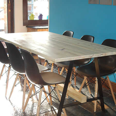 Recurrió a la ayuda de un amigo que hace la soldadura para hacer los marcos de acero de la pierna de la tabla, y estos sólo cuestan R800 (nosotros$ 50) para el par. La madera de la tabla de costos R1100 (US$ 70) en mi almacén local de constructores, y que incluye el hecho de que usé un pino gruesa de 32mm en lugar de ir para un pino de 20 / 22mm más delgado. Por lo tanto, al final del día mi mucho más fuerte y más resistente mesa vino en a un costo de alrededor de R2000 (US$ 127).