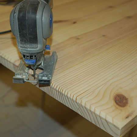 1. para unir las tablas individuales que usando galletas juntas. Si no tienes un carpintero de la galleta puede utilizar un agujero de ocultación de Kreg Jig, o simplemente unir las tablas. Todos estos métodos utilizan cola para madera entre las tablas y se sujetan durante la noche. Coloque las tablas con su cara hacia abajo sobre una superficie plana.