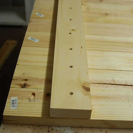 5. los travesaños estaban pegados y atornillados en cada tablón individual utilizando tornillos de 4,5 x 50mm. Esto no sólo refuerza la tabla, pero es donde se va a montar los marcos de acero de la pierna.