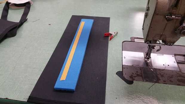 Paso 3. Coloque a la tela sobre la espuma de manera que el lado derecho y frente a y asegúrese de que el tejido extiende más allá del medio punto más de la espuma. Vamos a ser costura a la mitad de la espuma por lo que asegúrese de que la costura se captura ambas piezas.