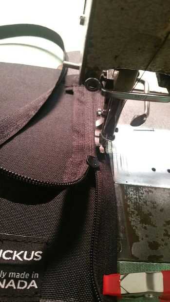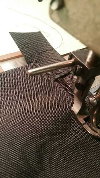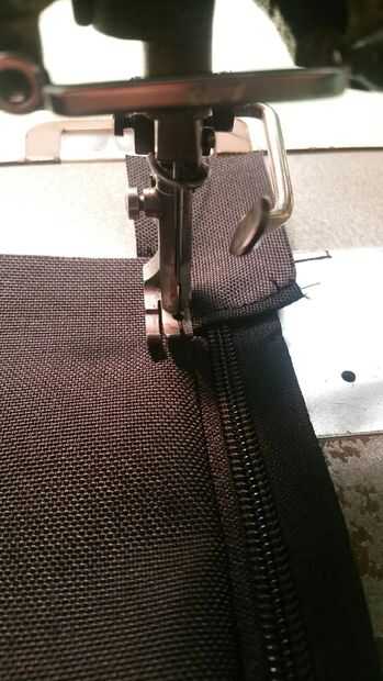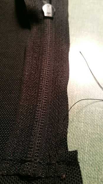 El primer paso para la bolsa es para coser la cremallera en la tapa.