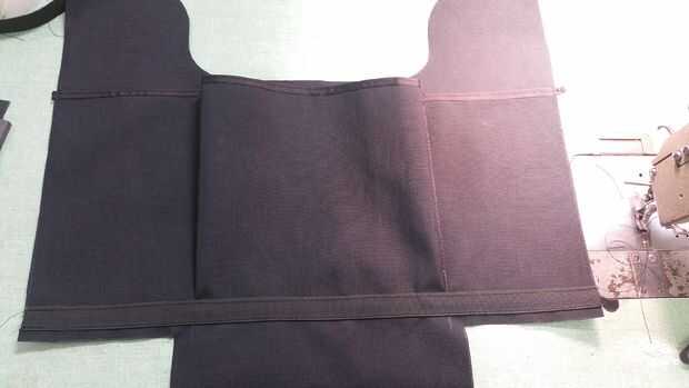 En este tutorial los tres bolsillos se hacen de una sola pieza de tela 28 "x 10". El bolso sí mismo es solamente 24" entonces ¿esas pulgadas extras hacia dónde? los 2 bolsillos será 6.5" de ancho y el bolsillo principal 11" de ancho. extra 4" es para la profundidad de la bolsa centro. Voy a explicar cómo recoger el exceso para crear la profundidad.