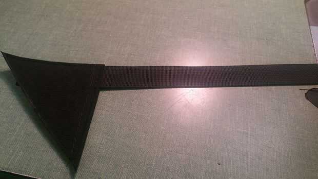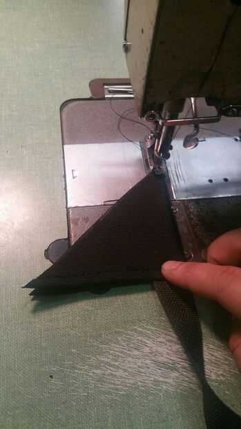 Paso 6. Montar los anclajes de la correa por dobladillar el amplio borde del triángulo, doblar a la tela en medio colocar la cinta y cose a lo largo de los bordes. Asegúrese de pespunte sobre la parte superior de la cinta varias veces para fijarlo.