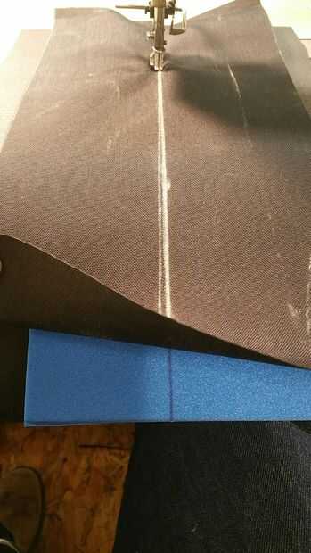Paso 1. Cortar un trozo de espuma 6,5 "× 18.5" *** Si tienes una máquina casera que sería mejor cortar la espuma a lo largo por la mitad dos de 3 "x 18" piezas. Cuando se coloca en la pieza posterior para dejar un espacio de 1/2" entre las dos piezas, esto debe ser lo suficientemente grande para el pie de la máquina para adaptarse a. Esto minimiza la cantidad de material que cose por solo 2 capas que la máquina debe ser capaz de manejar.