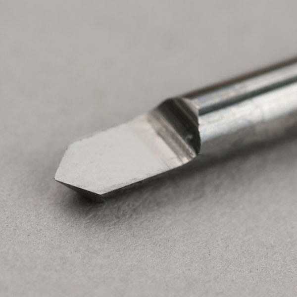 Para la herramienta estamos usando un cortador de grabado de 90 grados. Esto también tiene que ver con el molino de baja potencia, ya que esta herramienta tendrá menos contacto con la culata de una fresa de bola terminó. Una vez más, si tienes un molino mejor, podría utilizar la fresa bola terminada cerdo más lejos del material de una pasada de desbaste y luego cambiar el cortador de grabado para los últimos bits poco.