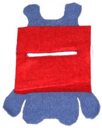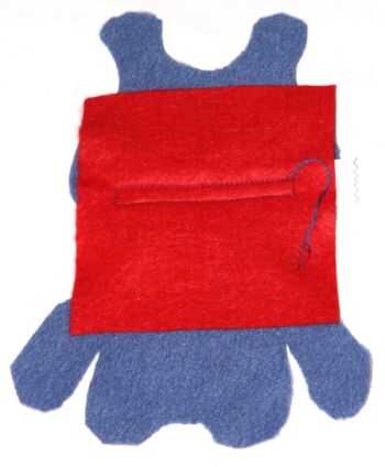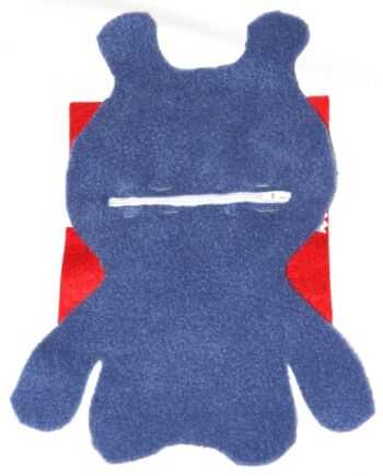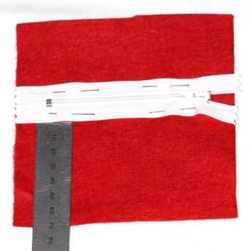 Colocar el recorte de polar con abertura en la parte superior del cierre relámpago de la boca y sentí con el lado más largo de 7 cm de fieltro para la parte inferior. (Imagen 4).