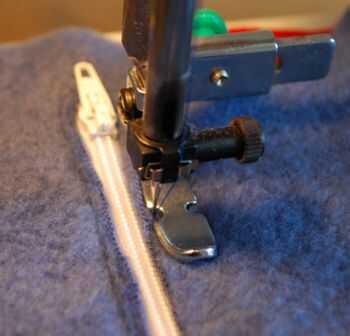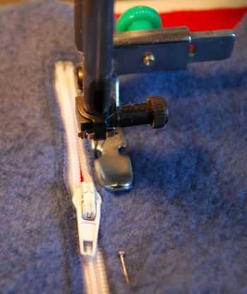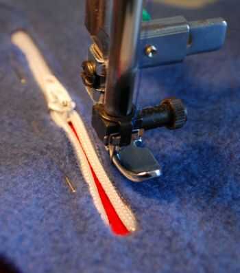 Coser alrededor de la cremallera utilizando una máquina de coser en puntada recta 3.