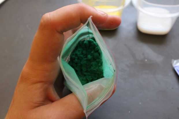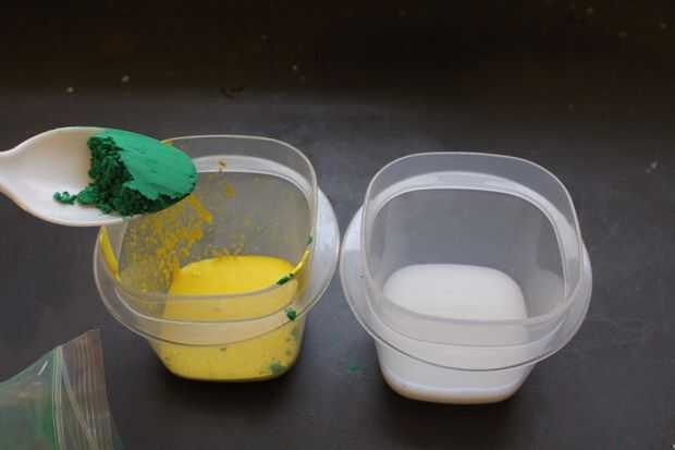 Una vez más, esto no es un arte exacto, así que experimentar un poco con su pigmento para conseguir el color que desee. Usted puede incluso mezclar pigmentos para crear tu color ideal. Para colores más profundos puede necesitar más pigmento, pero espere hasta que se mezcla añadir más, como realmente no se puede quitar una vez es allí sin necesidad de añadir más de su base (acrílico o medio transparente brillante).