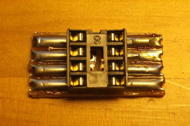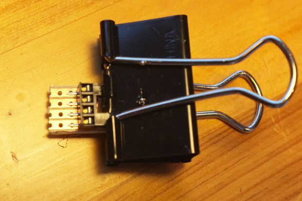 Nota: usted podría sólo meter los cables a través de los agujeros sin deformarlos, la placa perforada de forma está diseñado para ser utilizado. Hacerlo así para evitar cables asomando por la espalda y superficies conductoras que podrían cortas los cables por debajo de. (Además, me gusta el aspecto.)