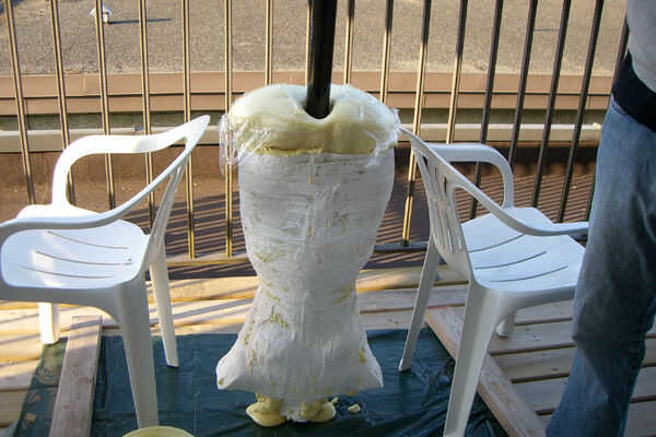 Tengo que añadir que yo hice pruebas en pequeña escala! Funcionó! Pero creo que una serie de factores (es decir. Verter en la espuma de la parte inferior, todo estaba en una escala más grande, menos capas de yeso fueron utilizadas ya que mantuvo medio desmayo) contribuyeron a la versión "final" mucked-para arriba.