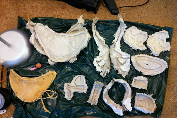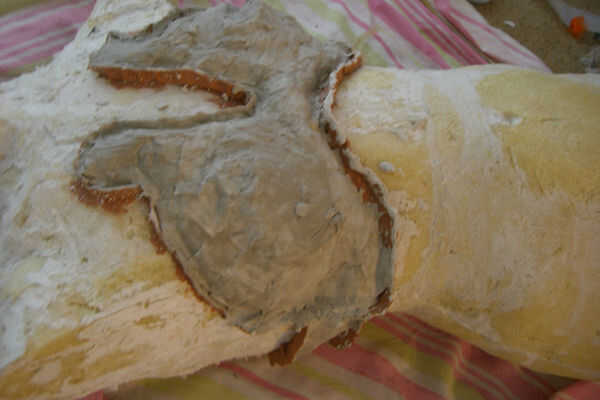 Rodean su escultura con una pared de arcilla. Capa de su escultura con vaselina (o agente de liberación de su elección). Corte la tela en cuadrados pequeños. Añadir un poco de agua a una pequeña cantidad de Ultra Cal 30 y mezclar, hasta obtener una consistencia similar al barro de cama del río. Goopy. Cubrir plazas de gasa en la mezcla y colóquela sobre su escultura. Una vez que es curado, retire el molde, limpiar y si es necesario, reunir pedazos nuevamente mediante la aplicación de la mezcla de cal ultra a los lados de piezas. arranque decoración, pulsera serpiente y collar todo tenía varias piezas de molde. Las piezas fueron espalda ultra-cal-ed para el molde de látex.