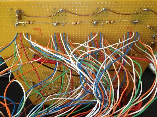 Nuestra decisión para levantar el displays de 16 segmentos para que se vean como los tubos Nixie los viejos sin duda añadido un montón de puntos de soldadura!