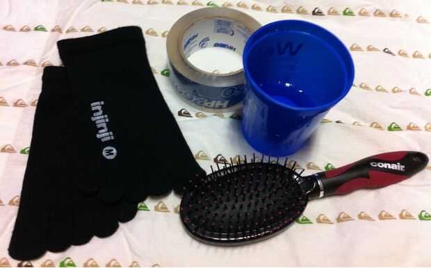 6: guantes de goma opcional para evitar que las huellas dactilares. Al experimentar con la magia de la modelo, múltiples huellas eran visibles. Estoy esperando que mediante el uso de guantes de goma en agua jabonosa, el Sugru suavizará en el calcetín muy bien.