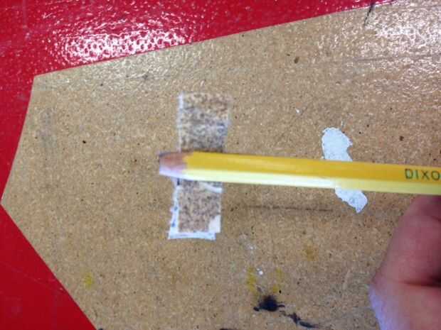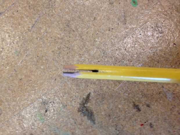 Utilizando una herramienta de corte, corte una ranura en su pieza. Esto crea una ranura que puede caber en su papel de la arena. Doblar el papel de la arena (corte hacia abajo por lo que es lo suficientemente pequeño como para caber) longitud sabio (estilo del perro caliente) por lo que en ambos lados hay una superficie abrasiva. Inserte el papel de la arena en la ranura, con una cantidad igual de material en ambos lados.