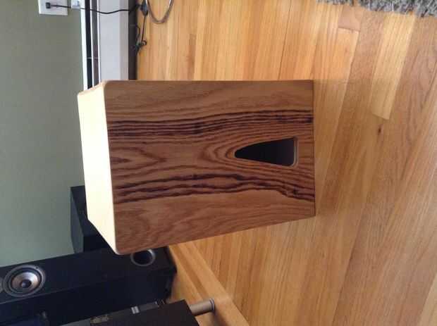 Ahora para la tapa-pone la cara de la madera contrachapada de 1/8" hacia abajo y colocar la cara de la caja en la misma, trazar la superficie del tambor. Otra vez, cortar cuidadosamente, asegurando que es sólo correcta o más grande. Porque tienes que cortar con el lado "bueno", que no es ideal, es probable que reciba algún escape y cortes limpios. Primero, usted puede generalmente conseguir sus piezas con sólo 2 cortes... suponiendo que tienes 2 bordes bien en la madera contrachapada para trabajar con, usted puede poner el cuadro justo en una esquina a rastro, 2 lados hechos, eso es. Me gusta diseñar algunos amplia cinta adhesiva en el lado bueno (la puede guesstimate mirando el contorno de lápiz y alineación de la cinta por debajo) en todos los cortes que tengo que hacer. Ayuda a mantener los cortes limpios y viene justo al lado. Una vez que se cortan las piezas delanteras y traseros, me gusta hacer mi boca en la pieza posterior. Es usted si usted quiere hacerlo ahora o esperar hasta que la pieza posterior se pegan y cortan su agujero. Que alejarse del círculo perfecto viejo aburrido y hacer algo cool... Tal vez una forma orgánica que imita la veta de la madera, o un símbolo o una forma que te gusta, cualquier cosa que usted puede cortar con una sierra de calar es juego justo!