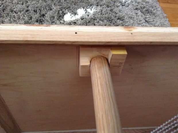 El "sistema de montaje" de la caja es bastante simple pero ingenioso, lamentablemente no puedo tomar el crédito para él pero puedo decirte que funciona! Para ello necesitamos 3 manzanas más bien pequeñas de madera sólida y un taco de madera sólido. Yo uso 1" roble pasador y algunos arce de 3/4" de grueso, pero casi nada va a hacer. Los 3 bloques pueden todos ser del mismo tamaño, decir 2 "x 3". 2 de ellos irá en los lados interiores de la caja justo detrás del marco para sostener el pasador, por lo que necesitan los orificios para la espiga en. Encontrar el centro de sus 2 cuadras, márquelo y luego utilice una broca Forstner o pala para taladrar sobre a medio camino los bloques (si se utiliza un pasador de 1", use un 1" poco y así sucesivamente). Luego en una cuadra tenemos que hacer un canal desde el agujero en el borde inferior, para que podamos conseguir la clavija hacia adentro y hacia afuera. Una vez que ya tienes los 2 bloques de hecho y la trampa montada en el taco, se puede un poco seco encajar los bloques y averiguar cuánto tiempo para cortar la espiga y donde pegar los bloques para que el lazo entra en contacto con la tapa en la parte superior.