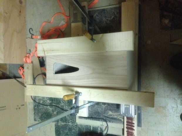 OK, tenemos todo hecho, ahora solo falta que la toques. Podemos comenzar pegando sobre la pieza posterior. Dry fit y hacer que todos es bueno, pegamento para arriba y fijarlo con la abrazadera hacia abajo. Desea un sello hermético, bien aquí, así que asegúrese de se sujeta bien. Deje que se seque durante la noche.