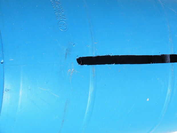 En un extremo del tubo (que solía ser la parte superior cuando se entero) hay un borde de plástico que sobresale. Este recorte.