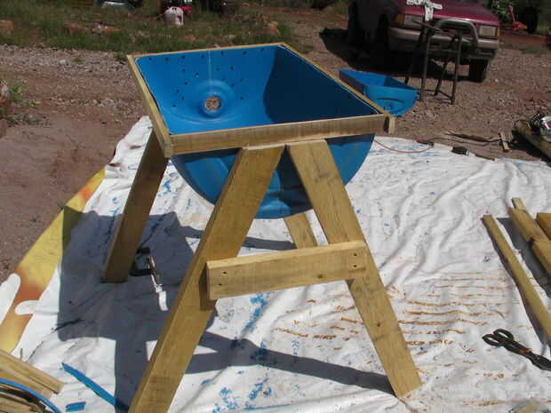 Atornille las patas en cada lado del cañón. Asegúrese de atornillar el marco a la pierna y poner varios tornillos de cañón en la pierna para una solución buena, sólida.