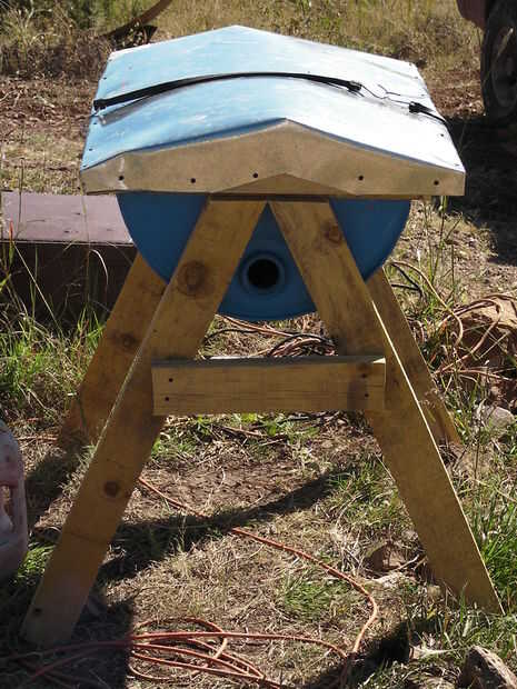 Enrolle el cable de bungee en el techo y el barril, a sí mismo. Esto evitará que el techo se vuele. Como alternativa, puede utilizar unos trozos de alambre del lazo para atar la cubierta firmemente a la colmena.