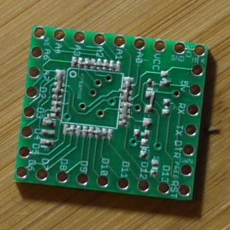 Este método funcionó mejor que la jeringuilla para mí. Poner poco de pasta de soldadura en la esquina de una bolsa superior de servicio pesado zip y poner un agujero en la esquina misma. Entonces sólo tiene que utilizar la bolsa como son glasear un pastel (muy pequeño). Concentrarse en obtener poco de pasta en cada pad. No te preocupes si eres un poco descuidado en la huella del Atmega. Tensión superficial se chupan la soldadura en el centro de las pastillas bastante bien. Usted puede arreglar para arriba con mecha y soldador si hay puentes. El tamaño del agujero fue clave. Un agujero de la aguja es demasiado pequeño, pero sólo necesita ampliarla para que funcione bastante bien.