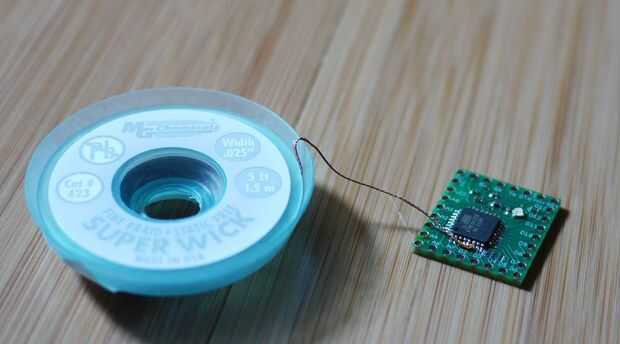 Sólo obtener alguna mecha de soldadura pequeño, poner algún flujo en el extremo y ponerla en el área del problema. Un rápido calor con el soldador y se fija. Gire hacia abajo un poco de donde soldadura a través de cosas de hoyo.