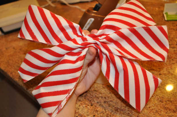 Posición, así que se puede por lo que tiene en sus manos les centro muerto, con incluso lazo mitades a ambos lados de los dedos. Si está un poco apagado, está bien; se puede todavía ajustar ligeramente después de que estén asegurados. Puede ser más fácil de saber si está aunque usted liso/aplana los lazos algunos primero. (Usted será ser esponjarlos cuando el arco se completa.)