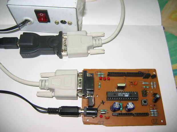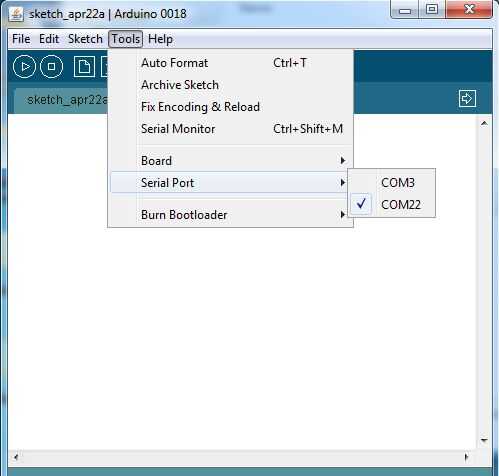conecta tu Arduino a una fuente de alimentación de 5v DC y el puerto serie COM1 del pc o puede usar un convertidor USB a serial.