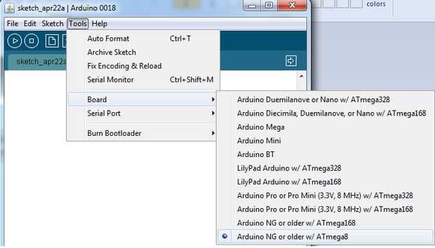 ir a "tableros > arduino NG o mayores con ATmega8"...