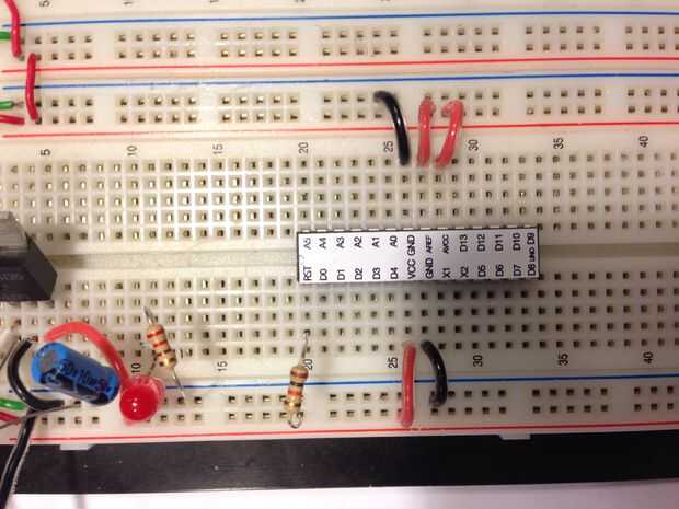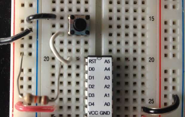 A continuación, añadir un resister del 10 k en el Pin 1, va a poder. Esta resistencia evita que el chip de restablecer a sí mismo accidentalmente.