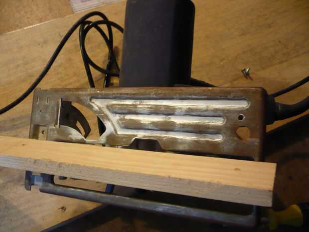 No tengo tabla vio, así se utilizará sierra circular de mano. Tiene una guía pobre, así que va a utilizar a Guía de simpe que usted puede hacer en minutos. Use una pieza de madera recta y sujetar a una base de sierra circular con tornillos. Para ello, tendrá que perforar 2 agujeros circuar vio la base. Véase el cuadro 1 y 2.