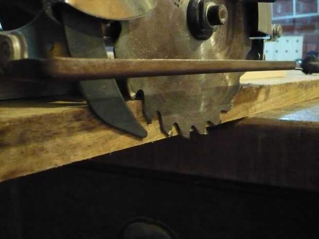 Antes de proceder, comprobar su profundidad de hoja de sierra. Debe ser unos milímetros más que el grueso del tablero. Véase el cuadro 4. Esto es muy importante, porque el retroceso trasero de circular vio a menudo surgen cuando la lámina se coloca a bajo en la madera.