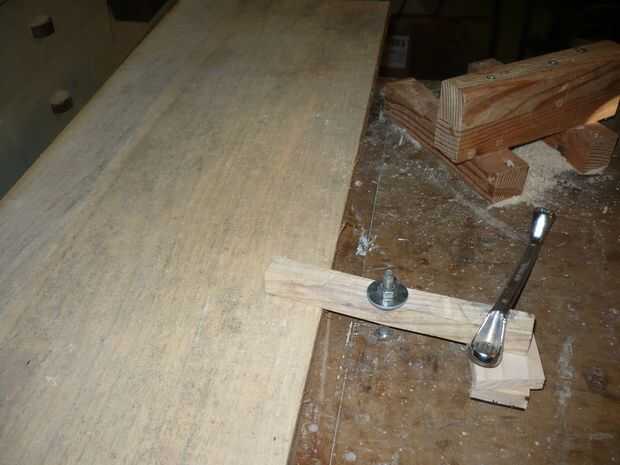 Así, para obtener la tabla recta, copio madera a 5,65 cm (2,2 pulgadas) - yo puede utilizar una medida similar o del misma - su elección. Por lo tanto, necesito 5 piezas de madera de 5,6 cm (2,2 pulgadas) - 4 piezas para el tablero y 1 pieza para conectar la pieza entre las "patas" de las heces.