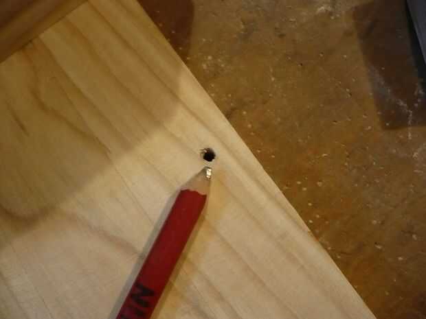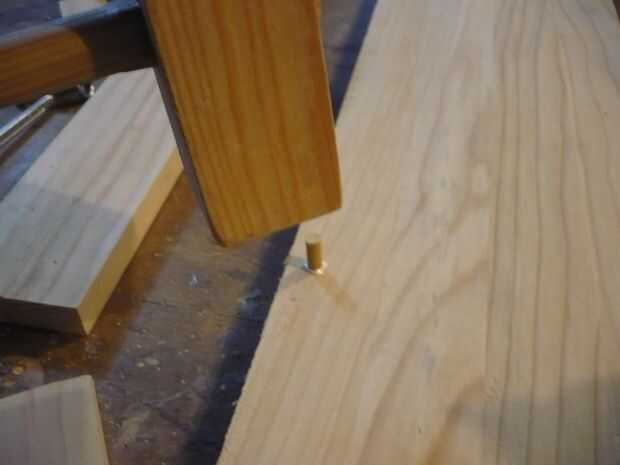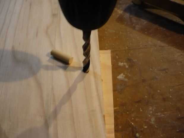 Perfore a través de ese agujero con broca de diámetro más grande que el agujero, luego use el pasador de mismo diámetro que la broca, poner un poco del pegamento en él y martillo abajo en el agujero. Que pegue un poco a cada lado del tablero y una vez seco, la arena hacia fuera para aplanar con el tablero. (Pic. 17. y 18.)