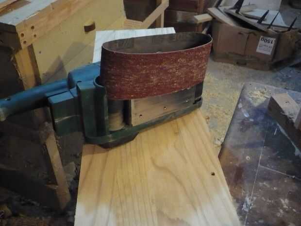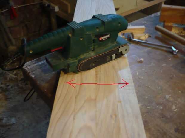 Yo use la lijadora de banda con papel de lija de 40 granos y arena en la dirección como se muestra en el cuadro 13. Arena hasta que usted esté satisfecho con el resultado. Ahora la Junta es más plana antes.