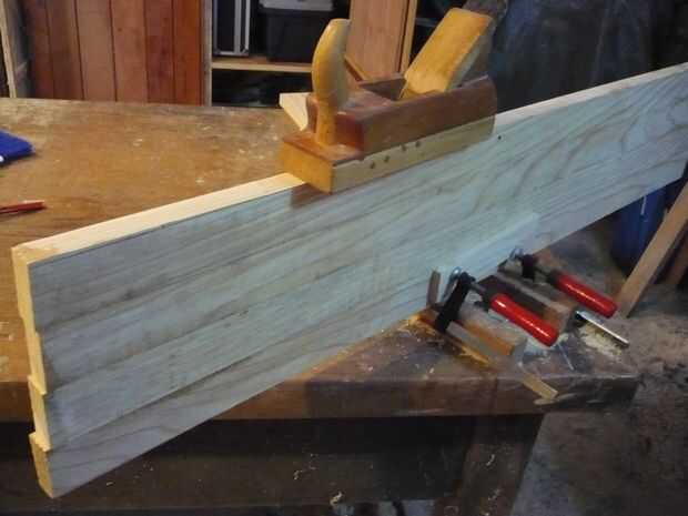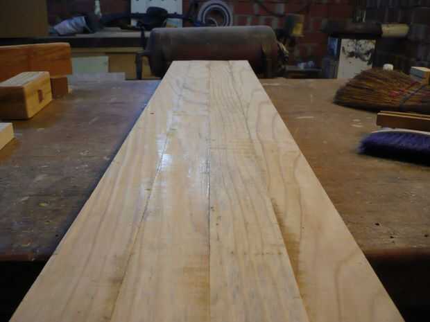 En primer lugar, en cuanto quité las pinzas, me di cuenta (mi maldito "ojo crítico") que mi tabla no es plana, sobre todo los bordes del tablero. El tablero es más ancho en los bordes, de 7 mm o 3/8 de pulgada y en cada lado. Ver foto. 2.