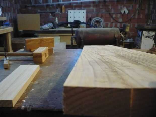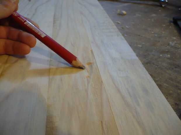 Otro error - como yo estaba cepillado mi tablero para aplanarlo, creé abolladura en la madera (Fig. 11) que más tarde reparamos con masilla para madera.