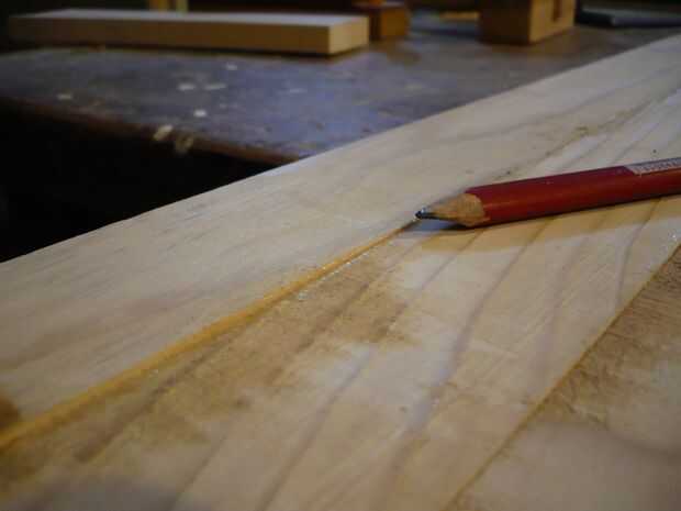 En primer lugar, determinar la diferencia y mejor manera de hacer eso es que usted ponga pieza plana de madera (puede ser cualquier cosa que usted sabe que es plano) y dibujar una línea recta a lo largo de que plano pieza. PIC. 3. y 4.