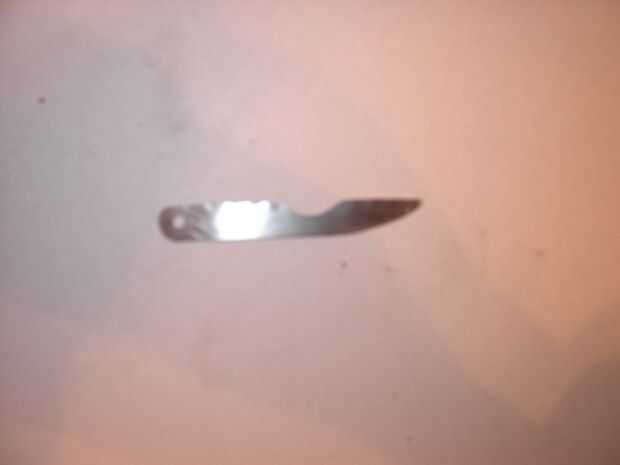 Vuelta a la amoladora. Suavemente del movimiento de la broca que desea ser la cuchilla a lo largo de las multas muela que tienes. Una o dos veces por cada lado debe hacerlo, recuerde que el acero que se utiliza es muy delgado, por lo que se muelen muy rápidamente. Mira eso genio, hay no hay excusas. Después de terminar de pulir, empezar en un oilstone. Que desea eliminar todos los arañazos de la amoladora. Afilar ambos lados de la hoja. Si usted afila correctamente, obtendrás un filo de navaja, pero tienes que ser paciente. Afilar tanto o tan poco como desee. Filos de cortan mejor pero desgastan rápidamente. Bordes más romas no cortan así, pero duran más. Teniendo en cuenta lo delgado del acero es, vale la pena colocarle un borde muy afilado. No tarda mucho... Creo que hay un instructable sobre afilado en algún lugar... Usted no puede ver en esta foto borrosa y desagradable, pero el filo de la hoja está completamente formado. Si usted quiere, termina aquí, su bisturí es completa y no tiene sentido continuar. No hagas nada estúpido, bla, bla, bla. Para aquellos que así lo quieren, vaya al paso siguiente.