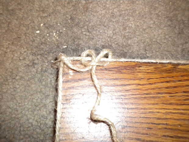 En la segunda imagen quería mostrar el final de una fila, es al igual que todos los lazos, pero es atado por un lado con las alondras cabeza de nudo y entonces comenzó en la segunda fila.