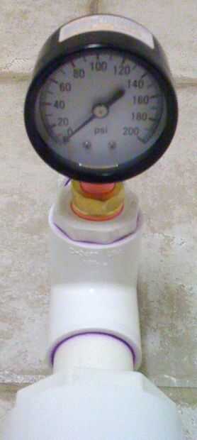 Ahora es el momento de poner todo junto. Atornillar el casquillo de latón en el conjunto de calibrador de válvula. ¡ No apriete hasta mucho! Si usted la manivela hacia abajo sobre el PVC fue crack y entonces usted está fuera del negocio. Sólo lo apriete hacia arriba teniendo cuidado de cara el calibre de nuevo hacia la cámara de presión para que se puede leer durante la presurización y la leña. Decida donde quiere la manija de la válvula que por lo que se puede activar cómodamente. Soy zurdo, así que lo pongo en la izquierda. Tornillo de la válvula en el conjunto de calibrador de válvula hasta que esté firme y luego orientar la manija. Por último, atornillamos el cañón en el lado de salida fuera de la válvula. Otra vez, cuidado de no a apretado o se agrietará el PVC. Y ahí lo tienen. Limpie el smooshage de su boca y cargar para arriba. Les recomiendo cargarlo hasta aproximadamente 10 psi y asegúrese de que todo lo tiene para unos minutos. Cada minuto añadir 10 psi y alejarse. Si usted recibe hasta 40 psi y todo se ve y suena bien, pare y deje reposar 10 minutos más o menos. Después de esperar, comprobar el manómetro y asegúrese de que esté aproximadamente a la misma psi que lo dejó. Si usted ha perdido más unos pocos psi, usted tiene una fuga de algunos donde. Por suerte, no lo hice, pero si lo hace, descarga el aire mediante la válvula schrader y abordar su fuga. Una vez que el cañón es aire apretado, (puede usar un poco de trapo en su primer tiro seguro), cargar a una baja presión y ver si tira. Divertirse con él, pero recuerda, no seas un cabeza de chorlito. Este chico malo puede dañar gravemente a la persona y propiedad.