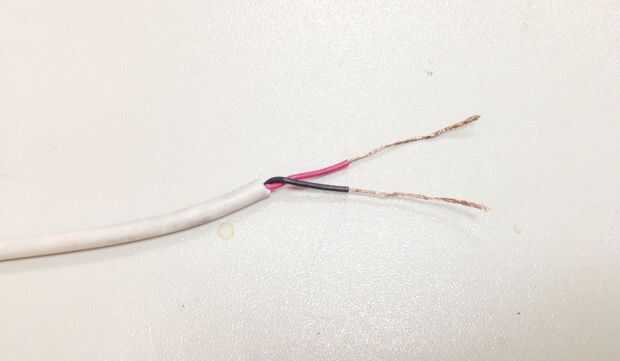 3. La tira de plástico de los alambres rojos y negros (usando el mismo método anterior) dejando unos tres cuartos de una pulgada del alambre expuesto.