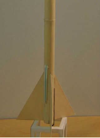 El estirón del lanzamiento es un pequeño cilindro que se inserta la barra de lanzamiento en que el cohete modelo pondrá en marcha recta. Sólo caliente-pegué una longitud de pajita pequeña al lado del cohete y funcionó a la perfección.