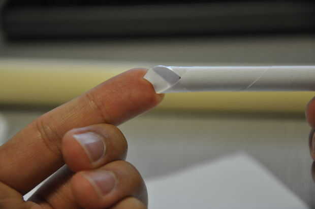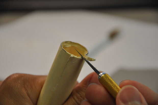 Finalmente, usé el cuchillo x-acto para limpiar cualquier bits desigual de los extremos del tubo.