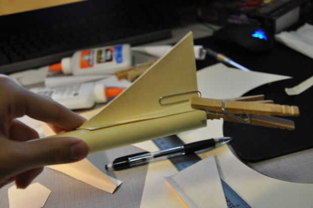 Con las aletas, puede utilizar cualquier método que te gusta. Fui para tener una idea de la formación de las aletas triangulares doblando y pegando una sola pieza por la mitad.