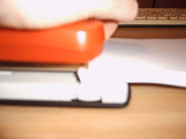 Puede o no tener que abrir su grapadora para poder presionar a través de todos ellos. Me funciono sin. Tan sólo un lado del papel de la grapa que desea mover de un tirón abierto a. He utilizado 8 grapas y sostiene perfectamente. Usted notará que las grapas se ven un poco en el otro lado. Las últimas páginas deben fijarse firmemente así. Si no considere grapado el otro lado.