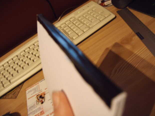 Ahora al abrir el libro te darás cuenta que no es que mano para el dibujo. Tan sólo tiene que utilizar una regla para doblar la cartulina a donde el negro eléctrico cinta extremos. De esta manera el libro se abrirá muy bien y es perfecto para el dibujo. (cuadro 3 en este paso)